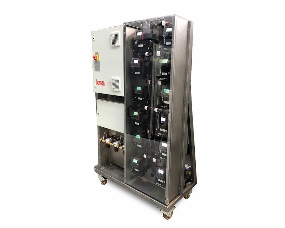 The KSN precision lubrication and control system is built on a rack, modular and available as a light version for 1-4 pumps/lubrication points and a Plus version up to 12 pumps/lubrication points. The system is integrable in existing processes and extremely user friendly.