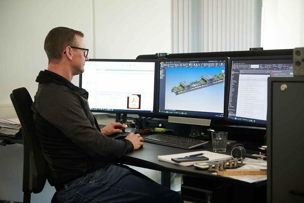 When we design and develop custom machines, thinking out of the box is our approach. Based on our extensive industry experience, we adapt and combine well-known and new technologies and components to invent new solutions that ensure reliable and efficient operation.e specialmaskiner, der sikrer pålidelig og effektiv drift.